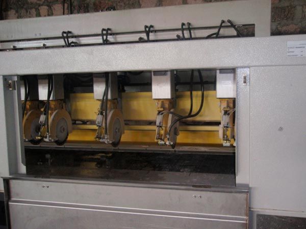 Станок имеет линейное строение, предназначена для окончательной шлифовки и полировки облицовочных плиток, фиксации размера. Устройство позволяет обработку краев плиток так же под углами 45 и 90 градусов.